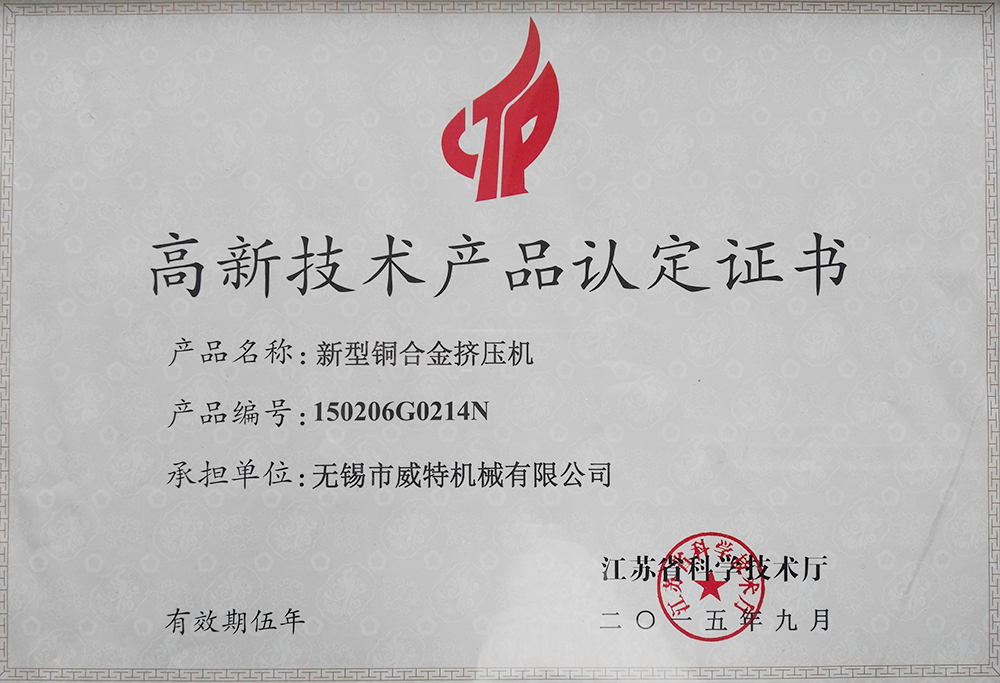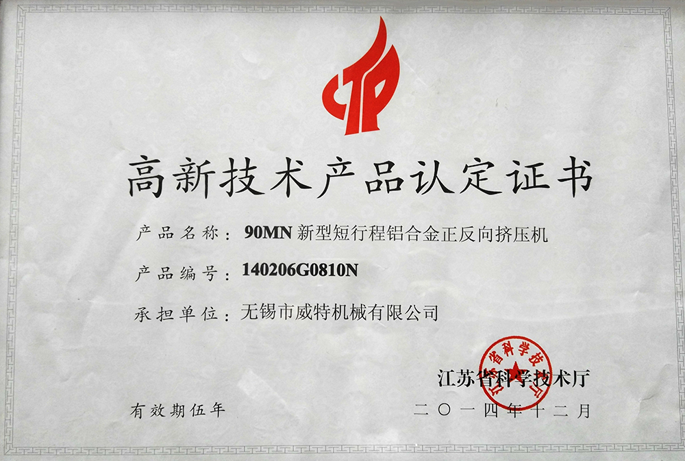 高新技術產品認定證書